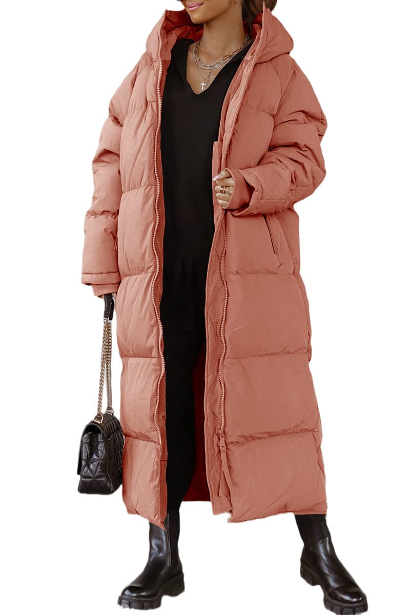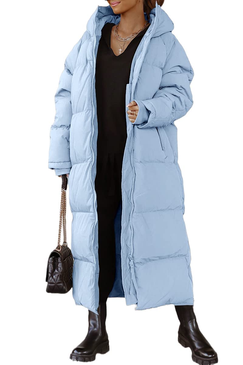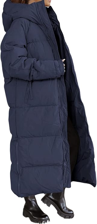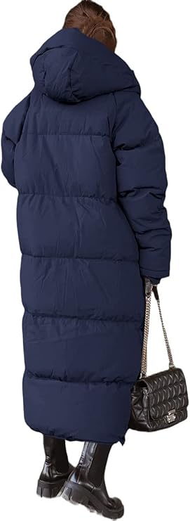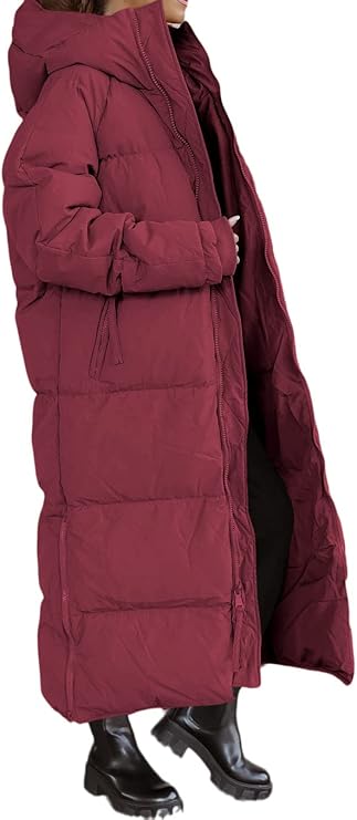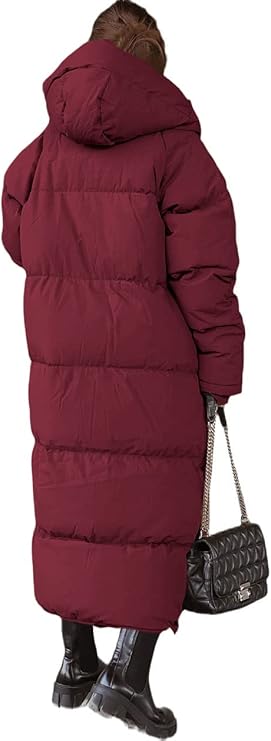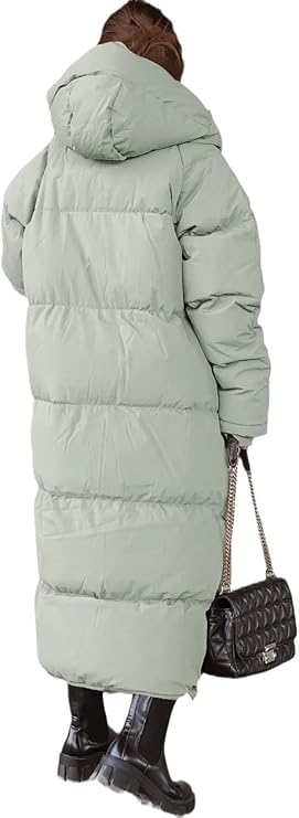 Tankaneo Women Long Quilted Coat Hooded Maxi Length Long Sleeve Puffer Jacket Padded Coat Winter Outerwear