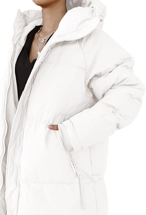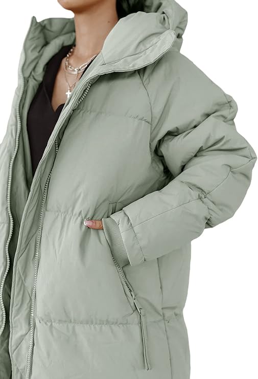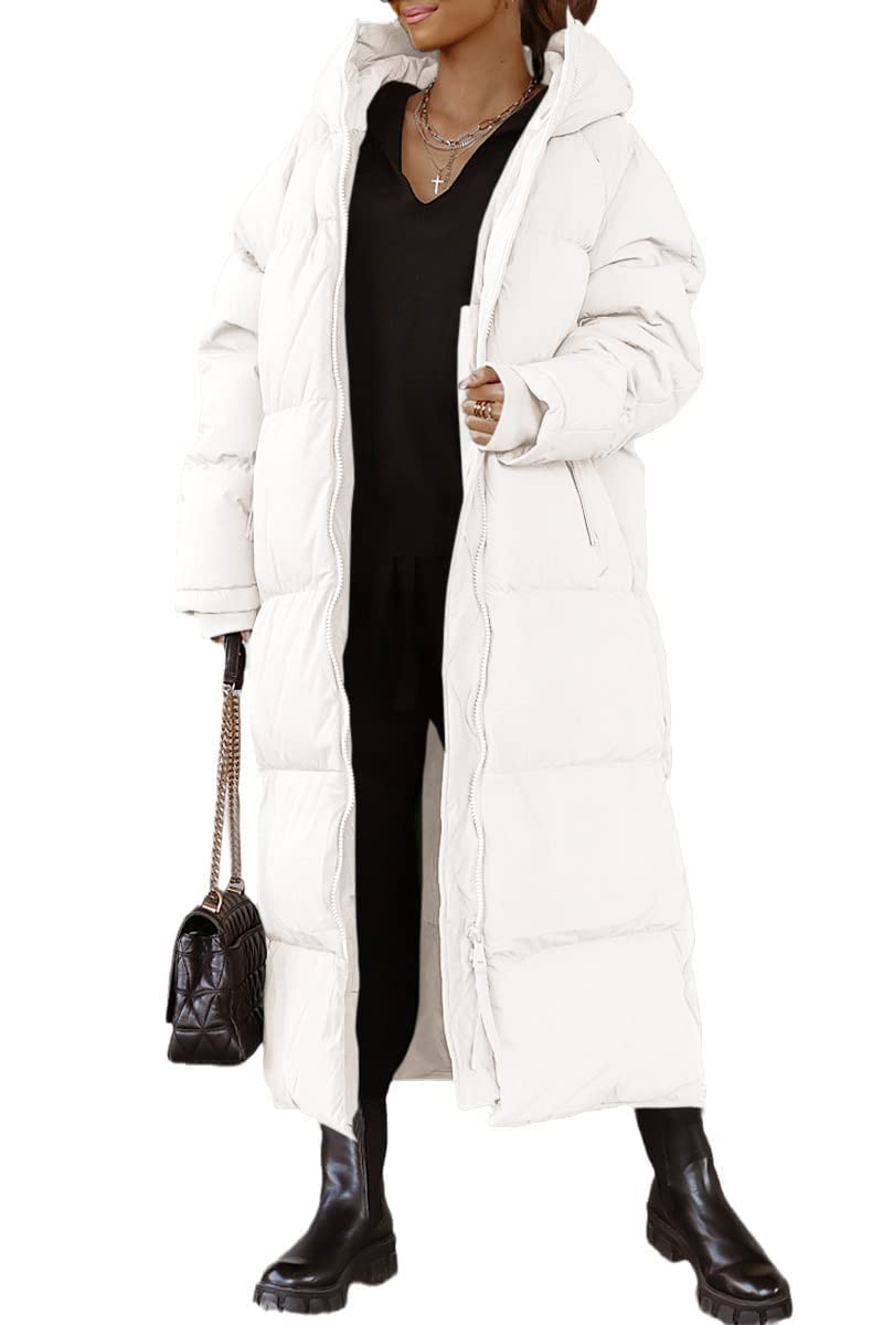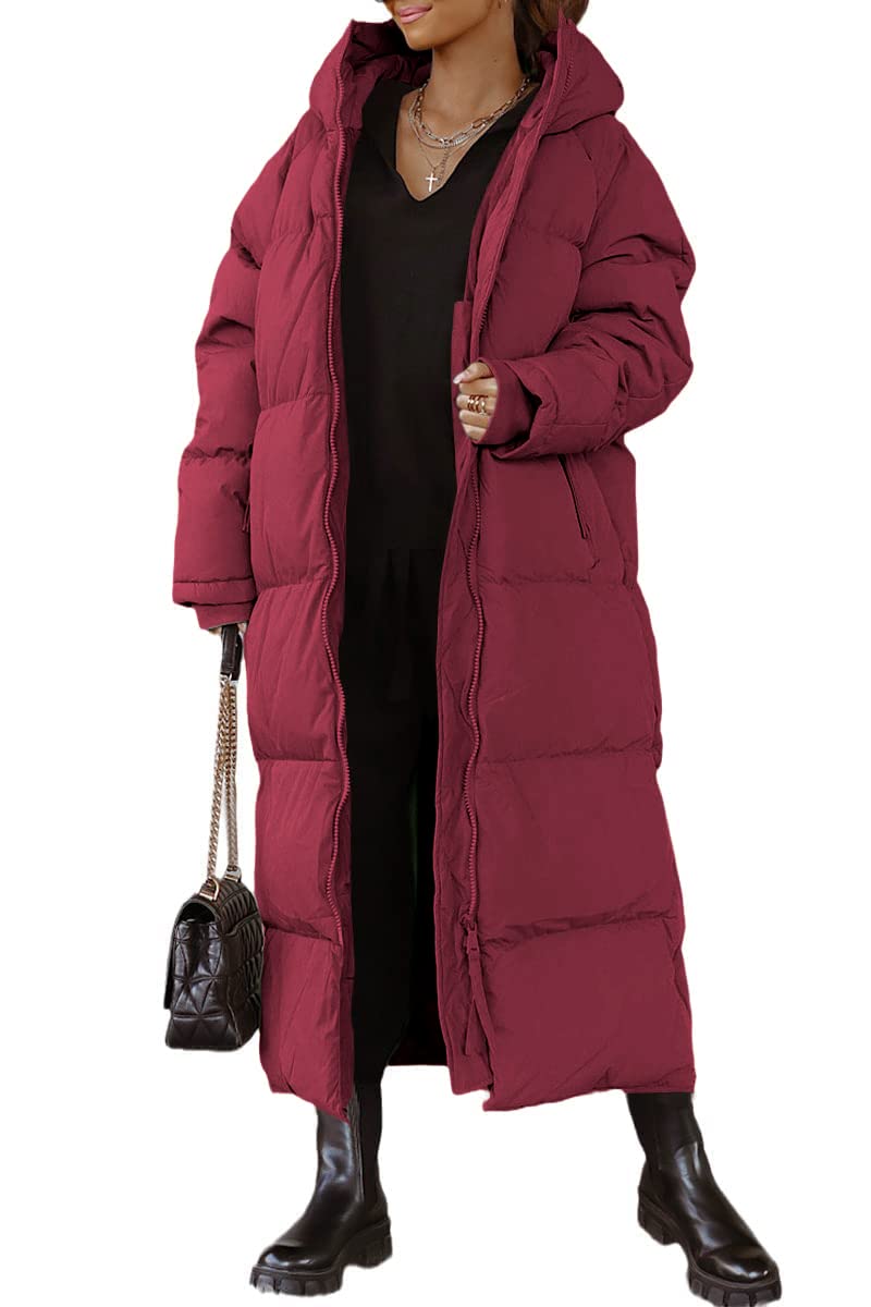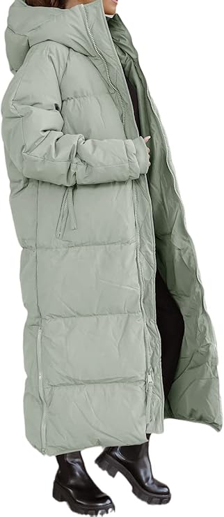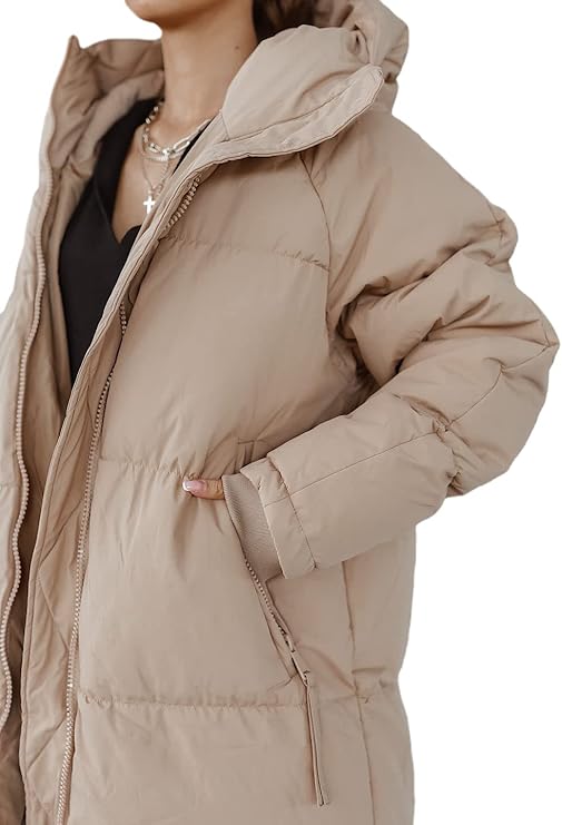 Tankaneo Women Long Quilted Coat Hooded Maxi Length Long Sleeve Puffer Jacket Padded Coat Winter Outerwear