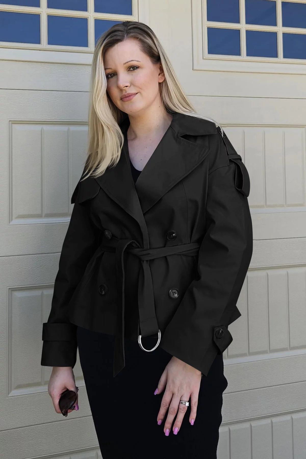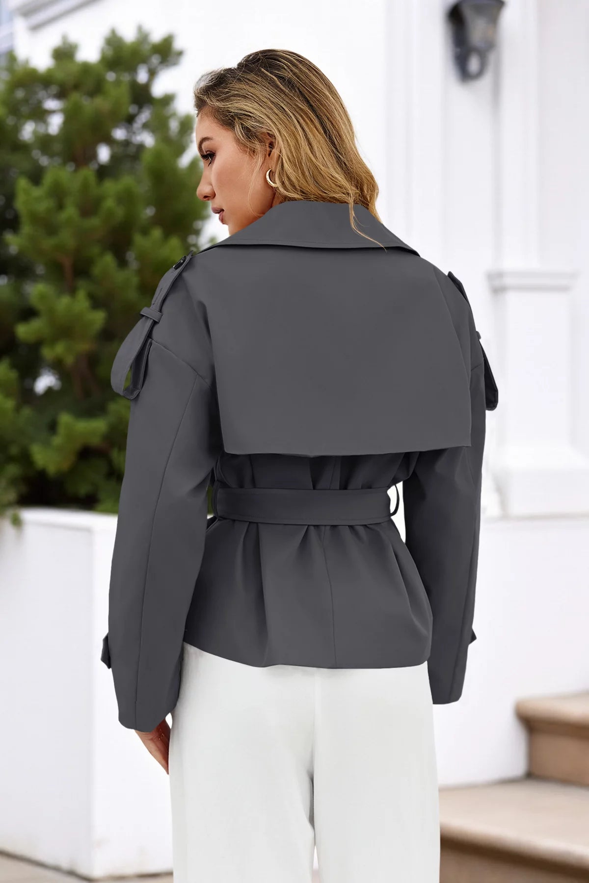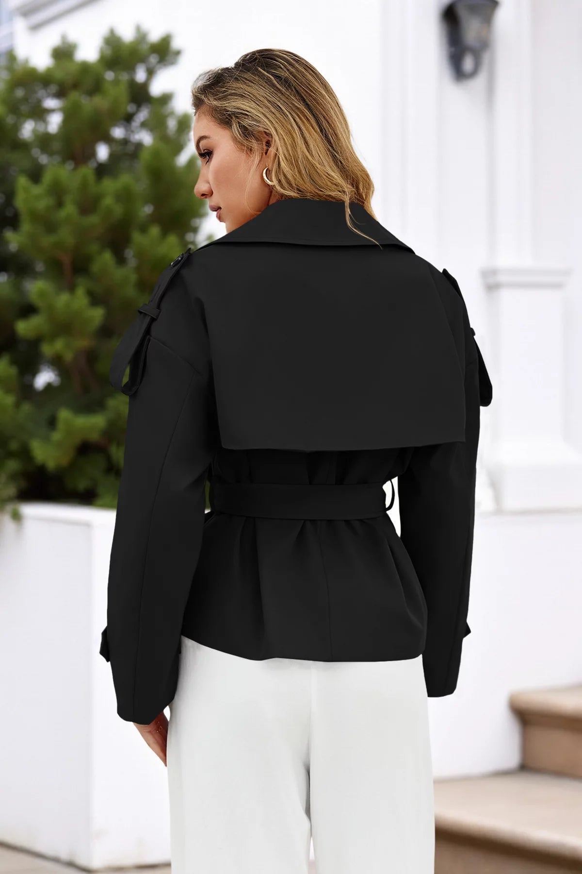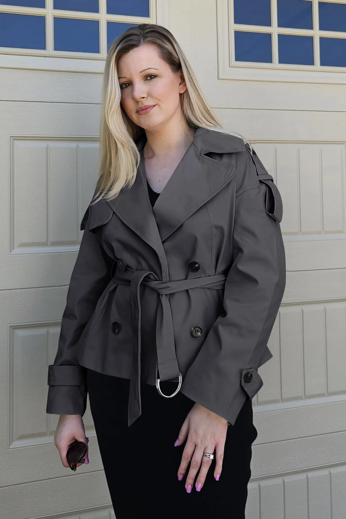 Tankaneo Womens Cropped Trench Coat Casual Double Breasted Short Jacket Fall Fashion Outerwear with Belt