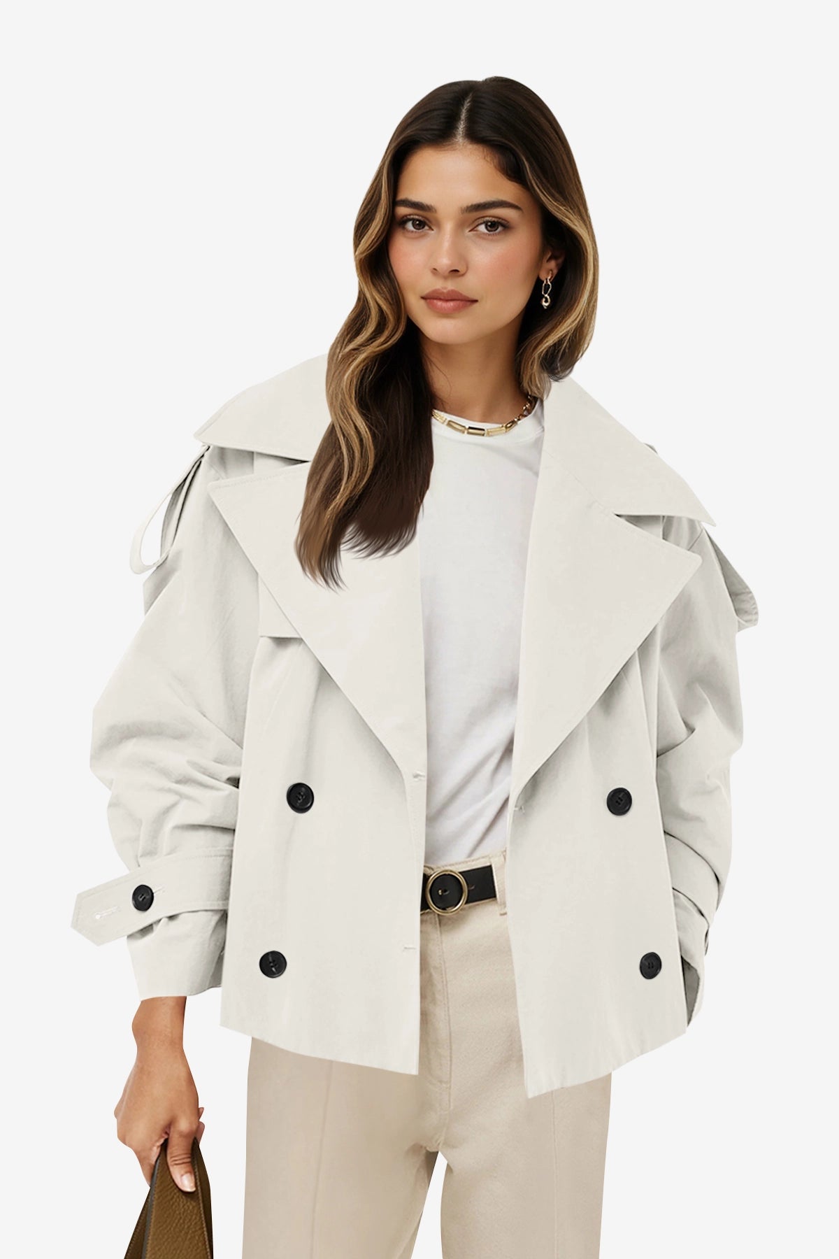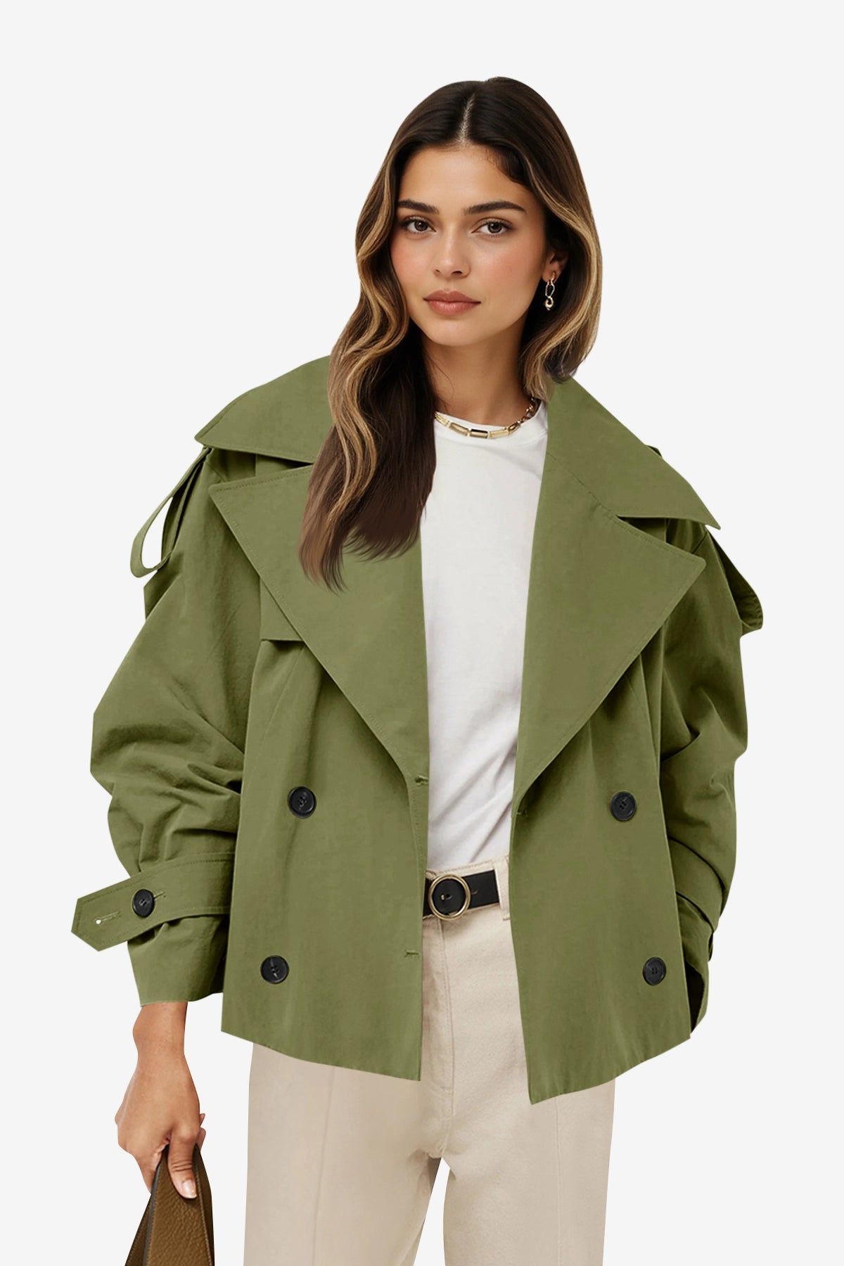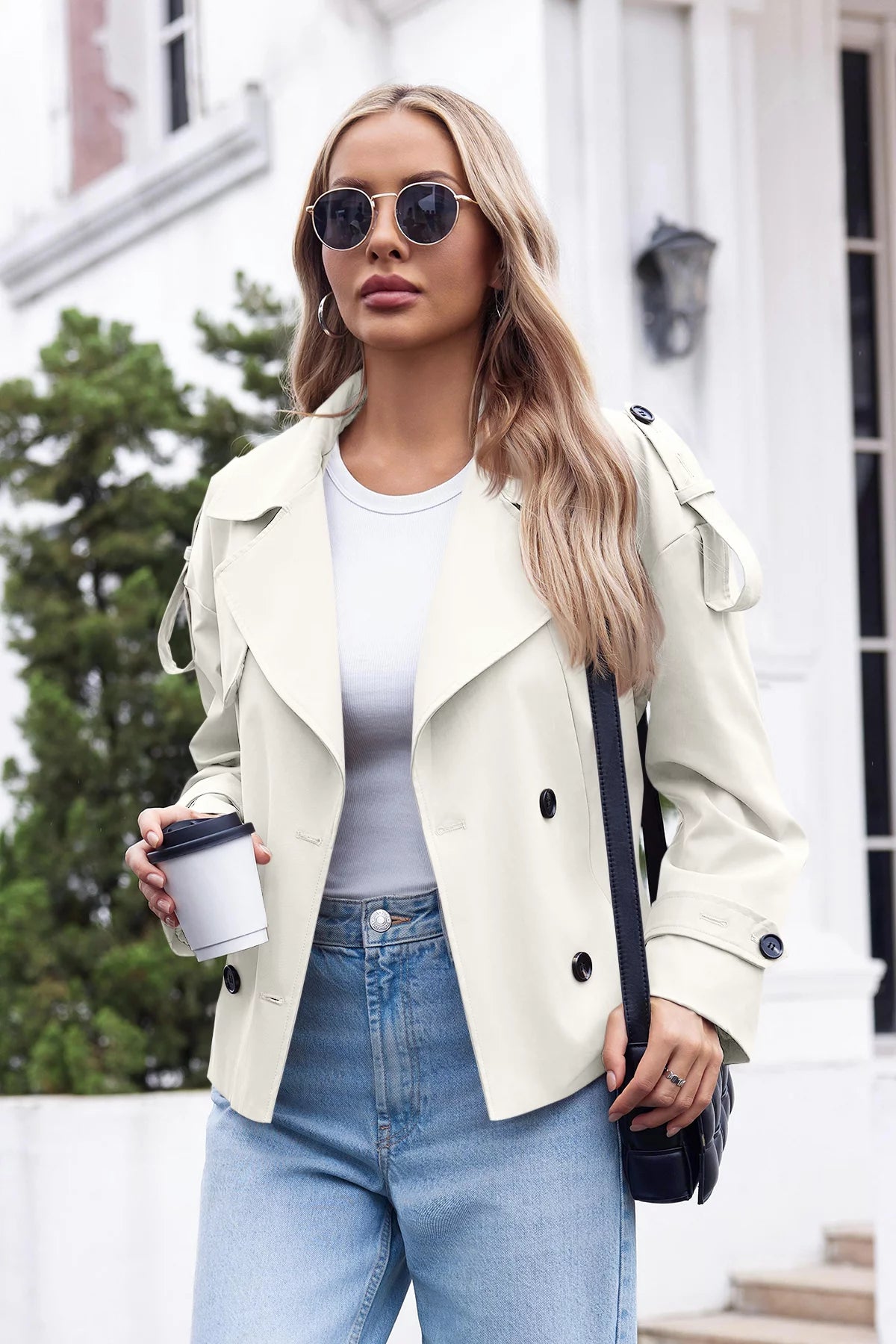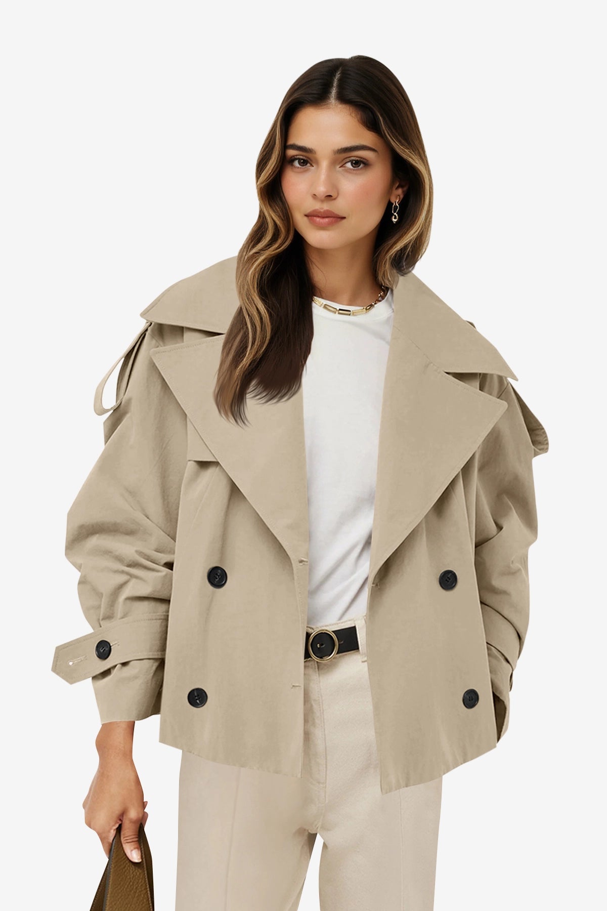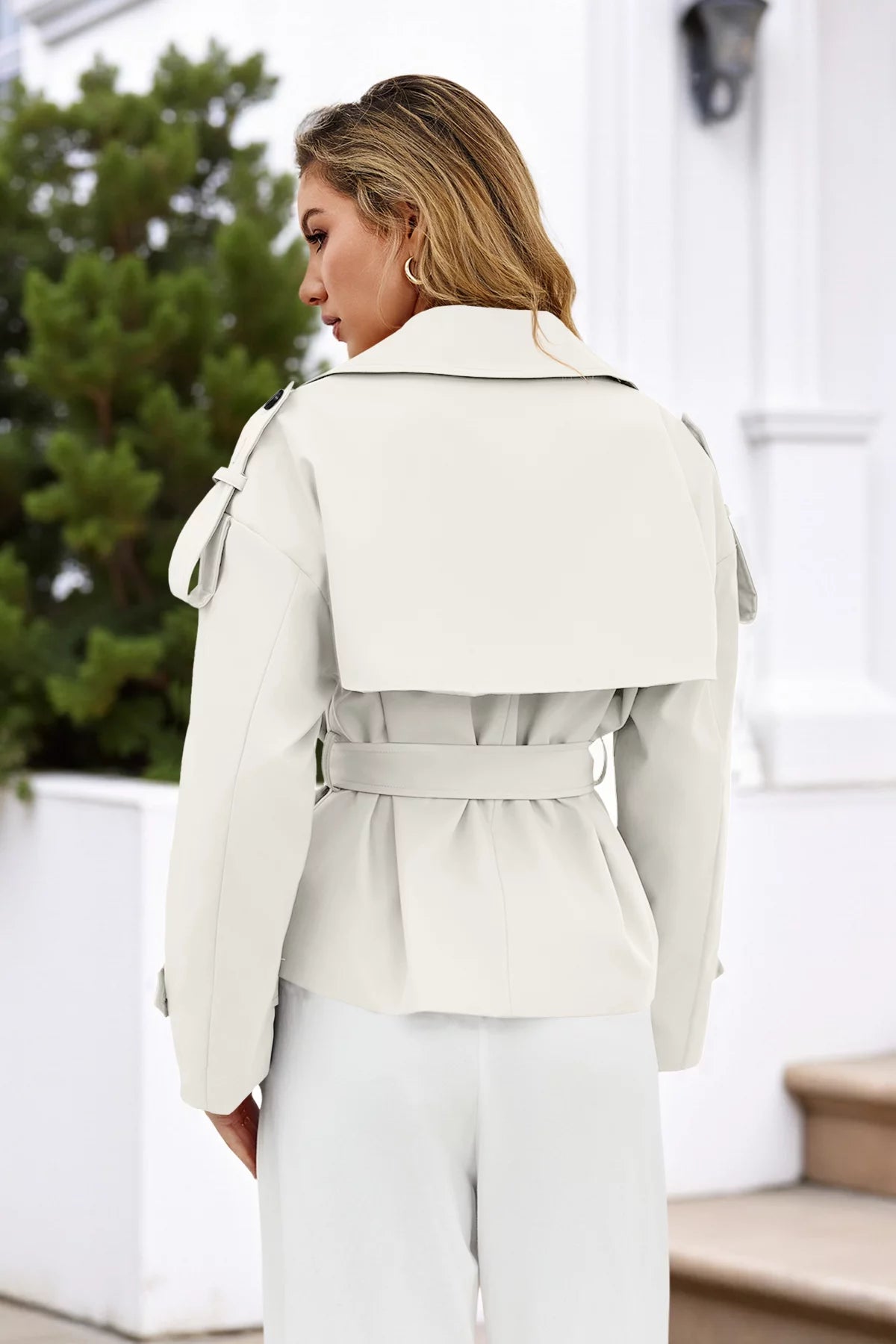 Tankaneo Womens Cropped Trench Coat Casual Double Breasted Short Jacket Fall Fashion Outerwear with Belt