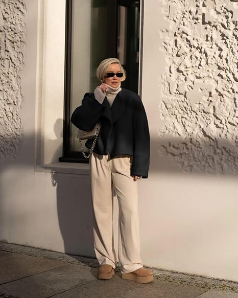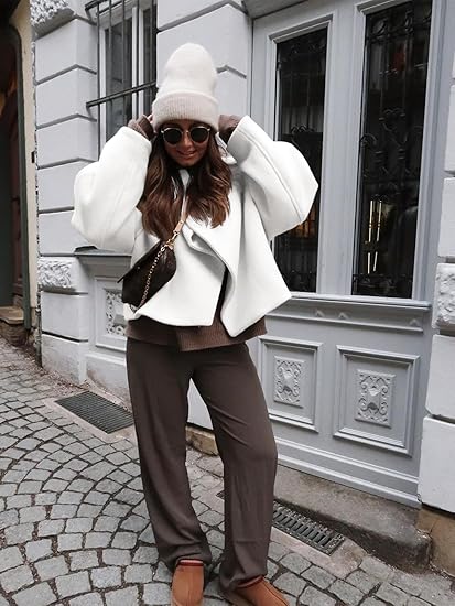 This Women's Oversized Wool-Blend Jacket is made of soft, warm fabric—features a relaxed fit and large lapel design for a chic, minimalist look. It’s a stylish cold-weather staple; perfect for layering over turtlenecks, sweaters, or dresses (ideal for office commutes, weekend outings, or adding an elegant vibe to autumn/winter outfits). True to size, dry clean recommended to preserve the fabric texture.